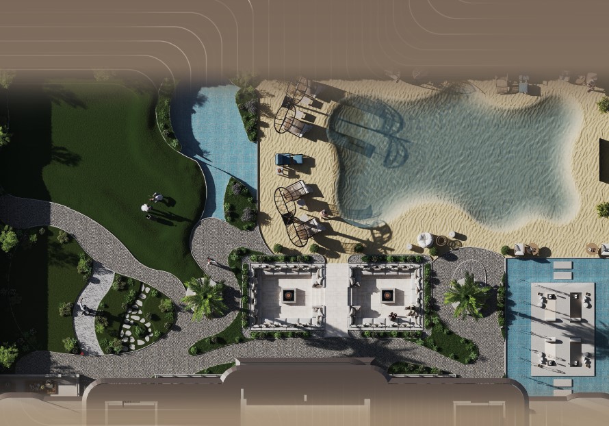 Amenities in the project will include a gym, relaxation areas, mini-golf, a meditation deck by the pool, a rooftop infinity pool and BBQ zones.